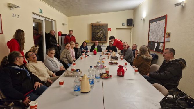 Im Anschluss fand das Adventsfenster statt. Dabei wurde eine schöne Adventsgeschichte vorgelesen sowie ein Gedicht und ein Segen gesprochen. Zwischen den Beiträgen sangen wir gemeinsam mehrere weihnachtliche Lieder. Zum gemütlichen Ausklang gab es heißen Kakao, Glühwein und Punsch ,sowie leckere Kekse.